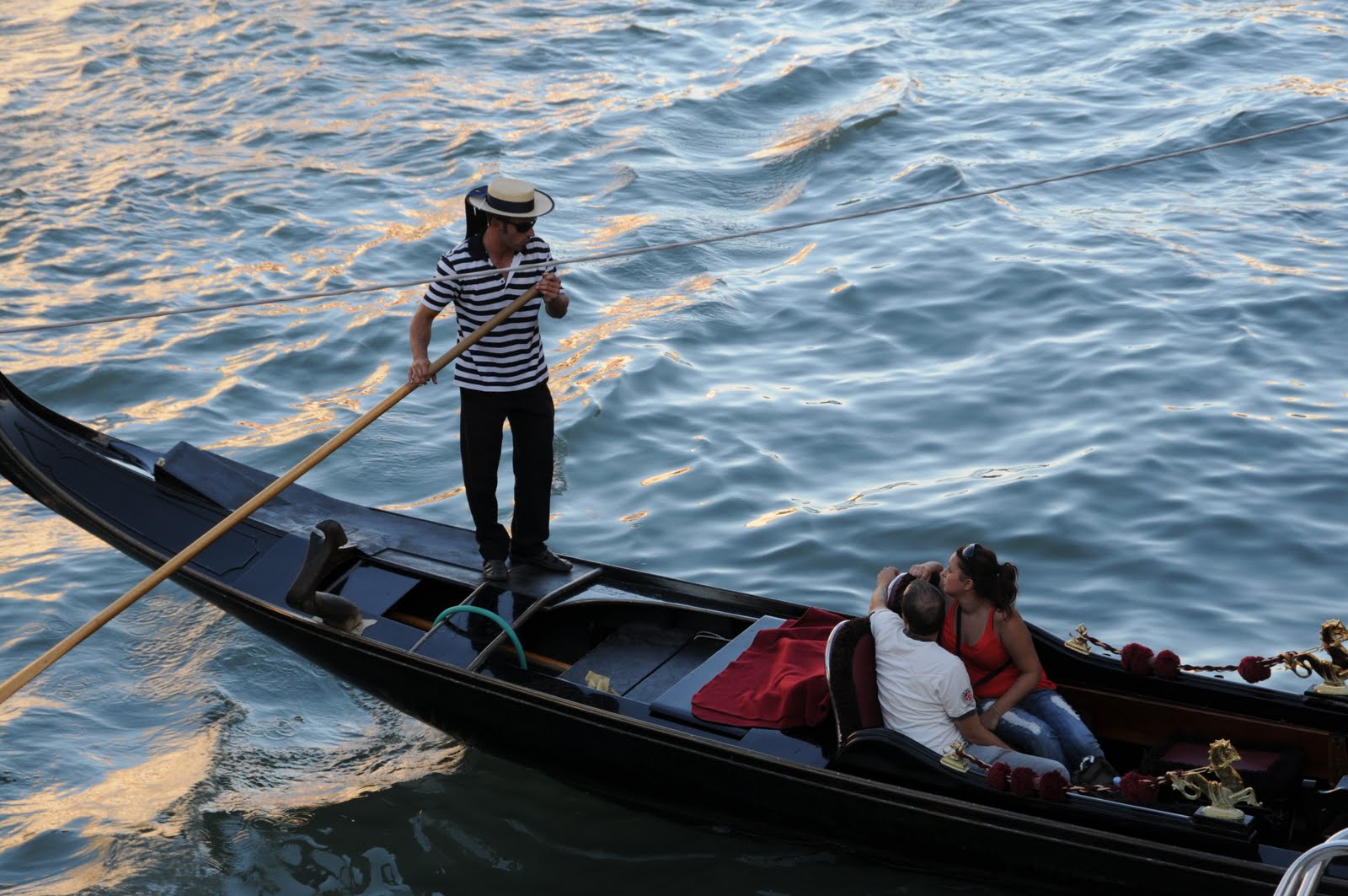 We walked and walked and eventually ended up in Rialto, the main tourist area along the Grand Canal and found a place to eat dinner. The view at dinner was superb along the canal and we heard several gondolas go by with Italian singers on board belting out various Italian tunes. The couple in the table an inch away from us was from Ann Arbor and just arrived today as well. We chatted while we waited for our food.