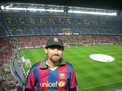Both Mark and I were very excited about our planned evening watching FC Barcelona futbol. We headed out towards the stadium with the intent of finding dinner along the way. Well, for some reason we couldn’t find any open places to eat. Finally we grabbed some quick sandiches. I guess the Barcelona crowd doesn’t eat around the stadium.